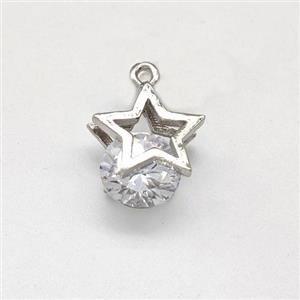 Copper Star Pendant Pave Zirconia Platinum Plated, approx 8-10mm
