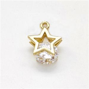 Copper Star Pendant Micro Pave Zirconia Gold Plated, approx 17-20mm