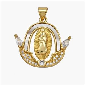 Virgin Mary Charms Copper Pendant Pave Zirconia Shell Resin 18K Gold Plated, approx 25-30mm