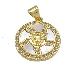 Medusa Charms Copper Pendant Micro Pave Shell Zirconia Circle 18K Gold Plated, approx 17.5mm