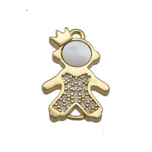 Copper Kids Boy Pendant Pave Shell Zircon 18K Gold Plated, approx 13-21mm
