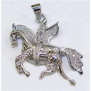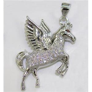 paved zircon copper pendant, platinum plated, approx 25x30mm
