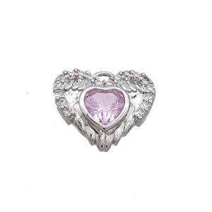 • Copper Heart Pendant Pave Zircon Angel Wing Platinum Plated, approx 13mm