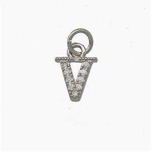 • Copper Letter-V Pendant Pave Zirconia Platinum Plated, approx 5-8mm
