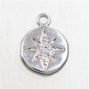 copper northstar pendant paved zircon, platinum plated, approx 10mm dia