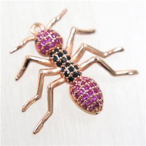 copper butterfly pendant paved zircon with 2loops, rose gold, approx 12-25mm