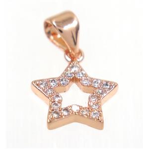 copper Star pendant paved zircon with 2loops, rose gold, approx 12mm dia
