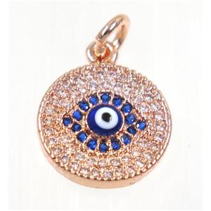 copper Evil eye pendant paved zircon, rose gold, approx 13mm dia