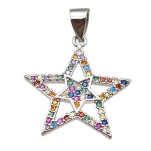 copper star pendants paved zircon, mixed color, approx 20mm dia