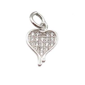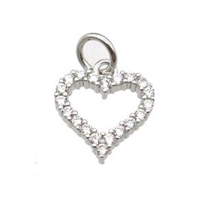 copper heart pendant paved zircon, platinum plated, approx 8-10mm