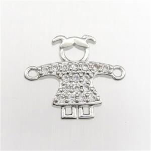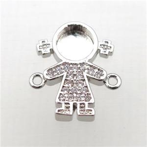 copper girls connector paved zircon, platinum plated, approx 10x12mm