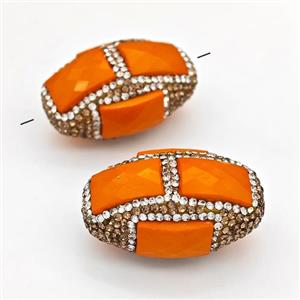 Clay Rice Beads Pave Rhinestone Orange Red Jade, approx 23-35mm