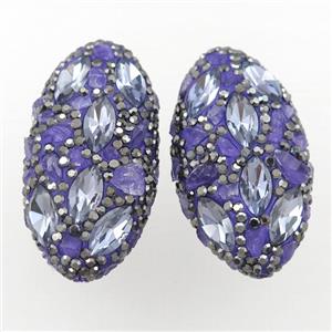 Clay oval beads paved rhinestone with amethyst, approx 20-40mm