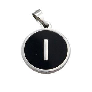 Raw Stainless Steel Pendant Pave Black Agate Letter-I, approx 15mm dia