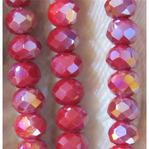 Chinese crystal glass bead, faceted rondelle, red AB color, approx 3x4mm dia, 135pcs per st