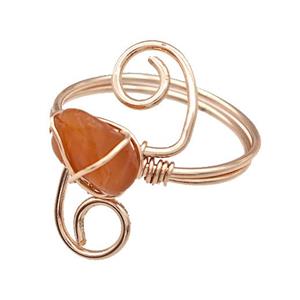 Copper Rings With Red Carnelian Wire Wrapped Rose Gold, approx 6-8mm, 18mm dia