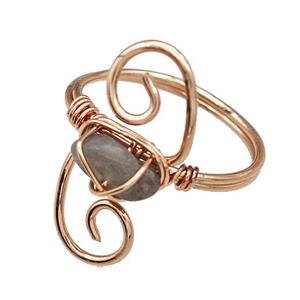Copper Rings With Labradorite Wire Wrapped Rose Gold, approx 6-8mm, 18mm dia