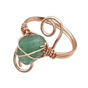 Copper Rings With Green Aventurine Wire Wrapped Rose Gold, approx 6-8mm, 18mm dia