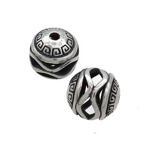 Stainless Steel Round Beads Hollow Antique Silver, approx 10mm