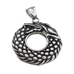 Stainless Steel Dragon Charms Pendant Antique Silver, approx 26-35mm