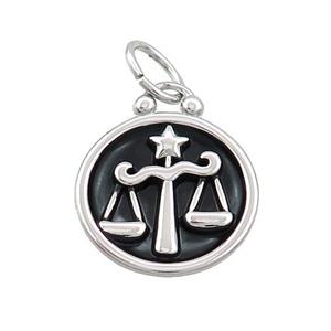 Raw Stainless Steel Libra Zodiac Charms Pendant Circle Black Enamel, approx 17mm dia
