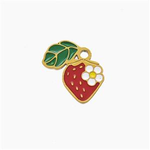 Stainless Steel Strawberry Pendant Green Red Enamel Gold Plated, approx 8-12mm