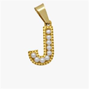 Stainless Steel Pendant Pave Pearlized Resin Letter-J Gold Plated, approx 10-15mm