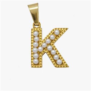 Stainless Steel Pendant Pave Pearlized Resin Letter-K Gold Plated, approx 10-15mm