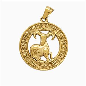Stainless Steel Symbols Pendant Zodiac Aries Circle Gold Plated, approx 25mm