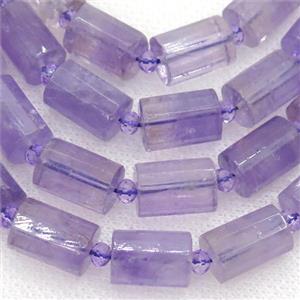 lt.purple Amethyst tube Beads, faceted column, approx 10x14mm