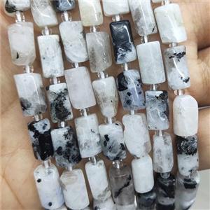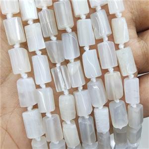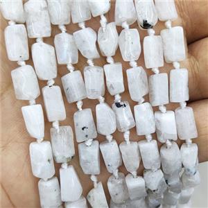 white MoonStone beads, B-grade, faceted tube, approx 12-18mm