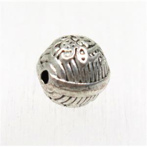 tibetan silver zinc round beads, non-nickel, duck silver, approx 10mm dia