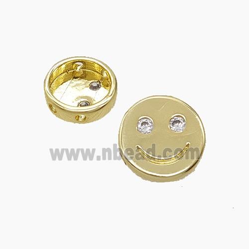 • Copper Emoji Beads Pave Zirconia Smileface Button Gold Plated