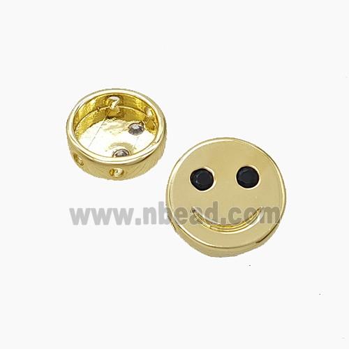 • Copper Emoji Beads Pave Zirconia Smileface Button Gold Plated