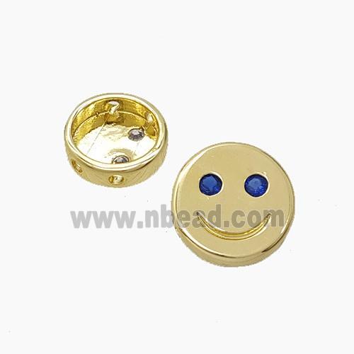 • Copper Emoji Beads Pave Zirconia Smileface Button Gold Plated