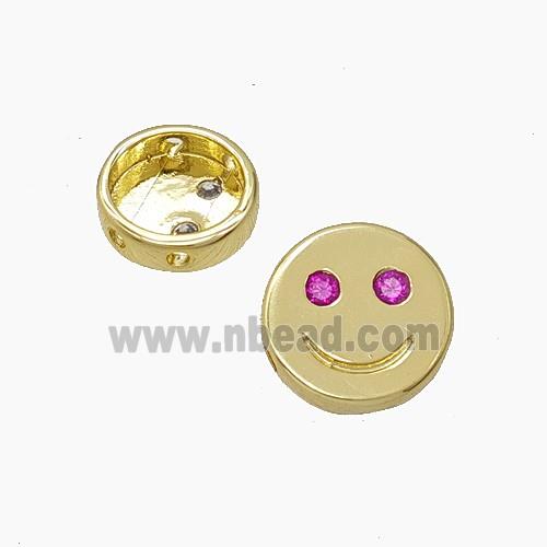 • Copper Emoji Beads Pave Zirconia Smileface Button Gold Plated