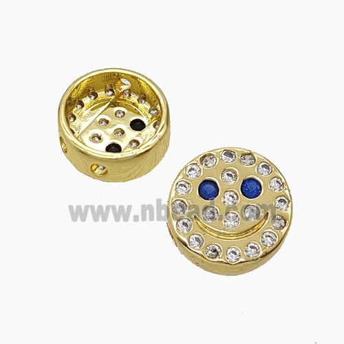 • Copper Emoji Beads Pave Zirconia Smileface Button Gold Plated
