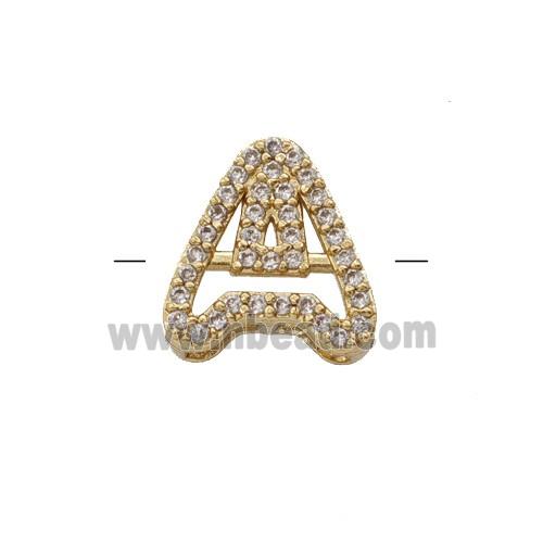 • Copper Letter-A Beads Pave Zirconia Gold Plated