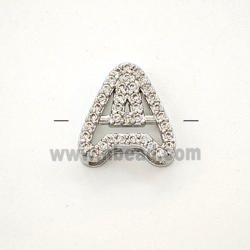 • Copper Letter-A Beads Pave Zirconia Platinum Plated