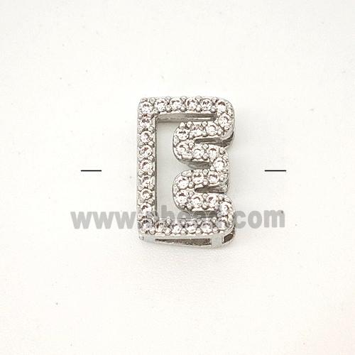 • Copper Letter-E Beads Pave Zirconia Platinum Plated
