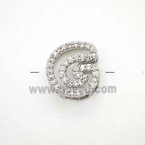 • Copper Letter-G Beads Pave Zirconia Platinum Plated