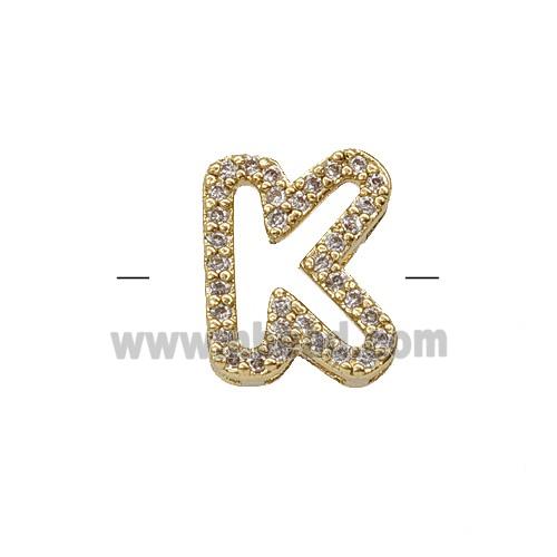 • Copper Letter-K Beads Pave Zirconia Gold Plated