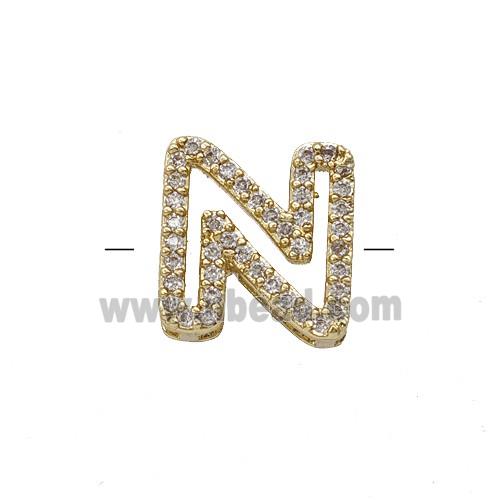 • Copper Letter-N Beads Pave Zirconia Gold Plated