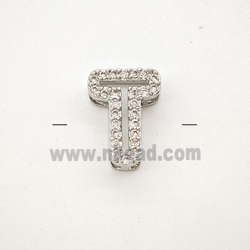 • Copper Letter-T Beads Pave Zirconia Platinum Plated