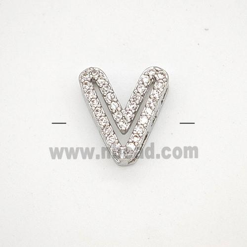 • Copper Letter-V Beads Pave Zirconia Platinum Plated