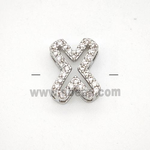 • Copper Letter-X Beads Pave Zirconia Platinum Plated