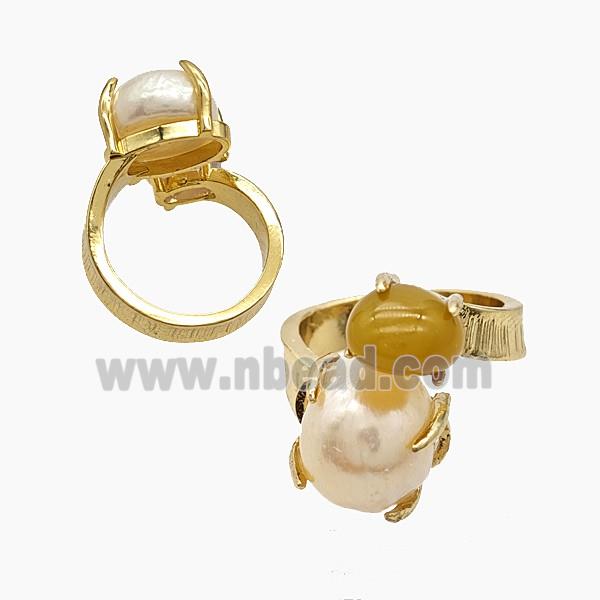 • Copper Rings With Pearl Yellow Agate Gold Plated