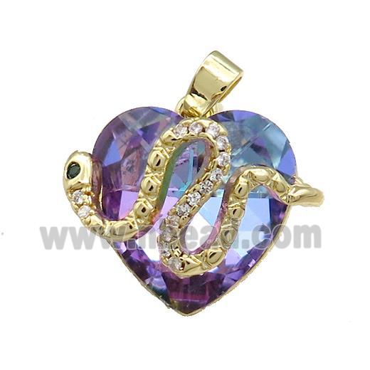 • Copper Snake Pendant Pave Crystal Glass Zircon Gold Plated