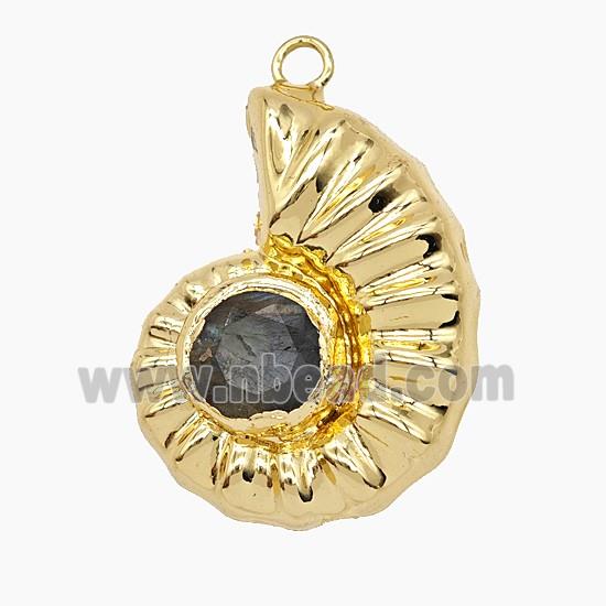 • Copper Spiral Shell Pendant Pave Labradorite Hollow Gold Plated