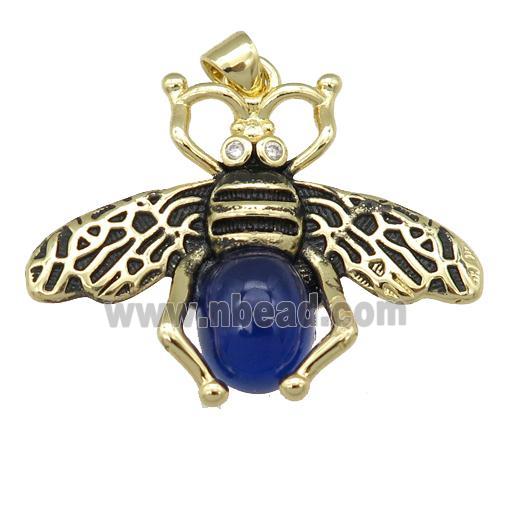 • copper honeybee Pendant with blue cats eye stone, antique gold